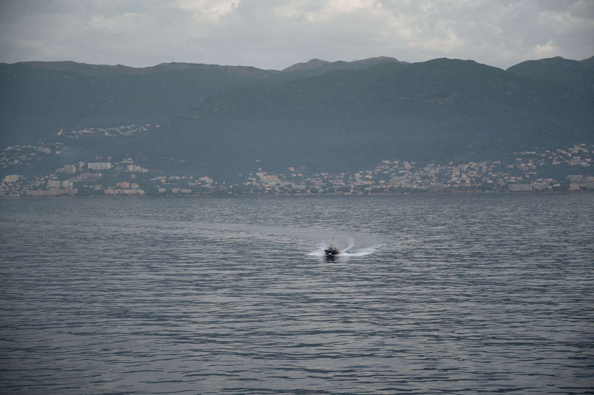 Das da in der Ferne muss Bastia sein, deutlich dichter besiedelt als alles, was wir bislang gesehen haben. Und große Schiffe verraten uns die Lage unseres Zielortes: den Hafen der mit knapp 50.000 Einwohnern zweitgrößten Stadt der Insel.