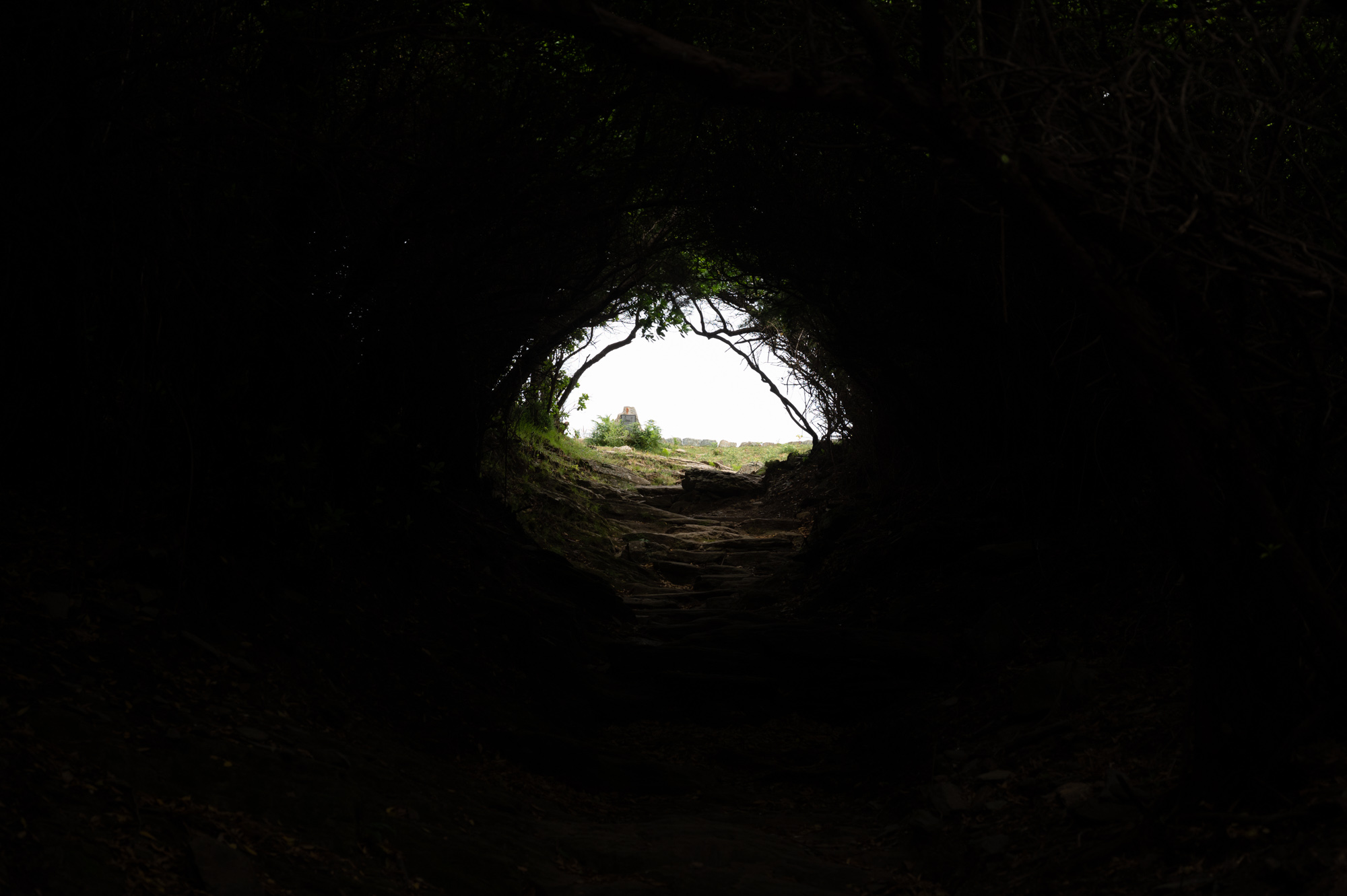 Es beginnt ein verwunschener Wald. Der Weg ist wie aus einem Märchen. Er beginnt an einer alten Quelle, die in einer kleinen Höhle im Hang liegt. Darin ist eine Krippe mit Spielzeugfiguren. Als es steiler wird und die Pausen häufiger, ähnelt der Wanderweg eher einem (wortwörtlich!) Tunnel aus Gestrüpp. Am Ende eine Lichtung mit einem kleinen Steinhäuschen und einem vor sich herrottendem Pickup. Wir sind am höchsten Punkt unserer Wanderung angekommen.
