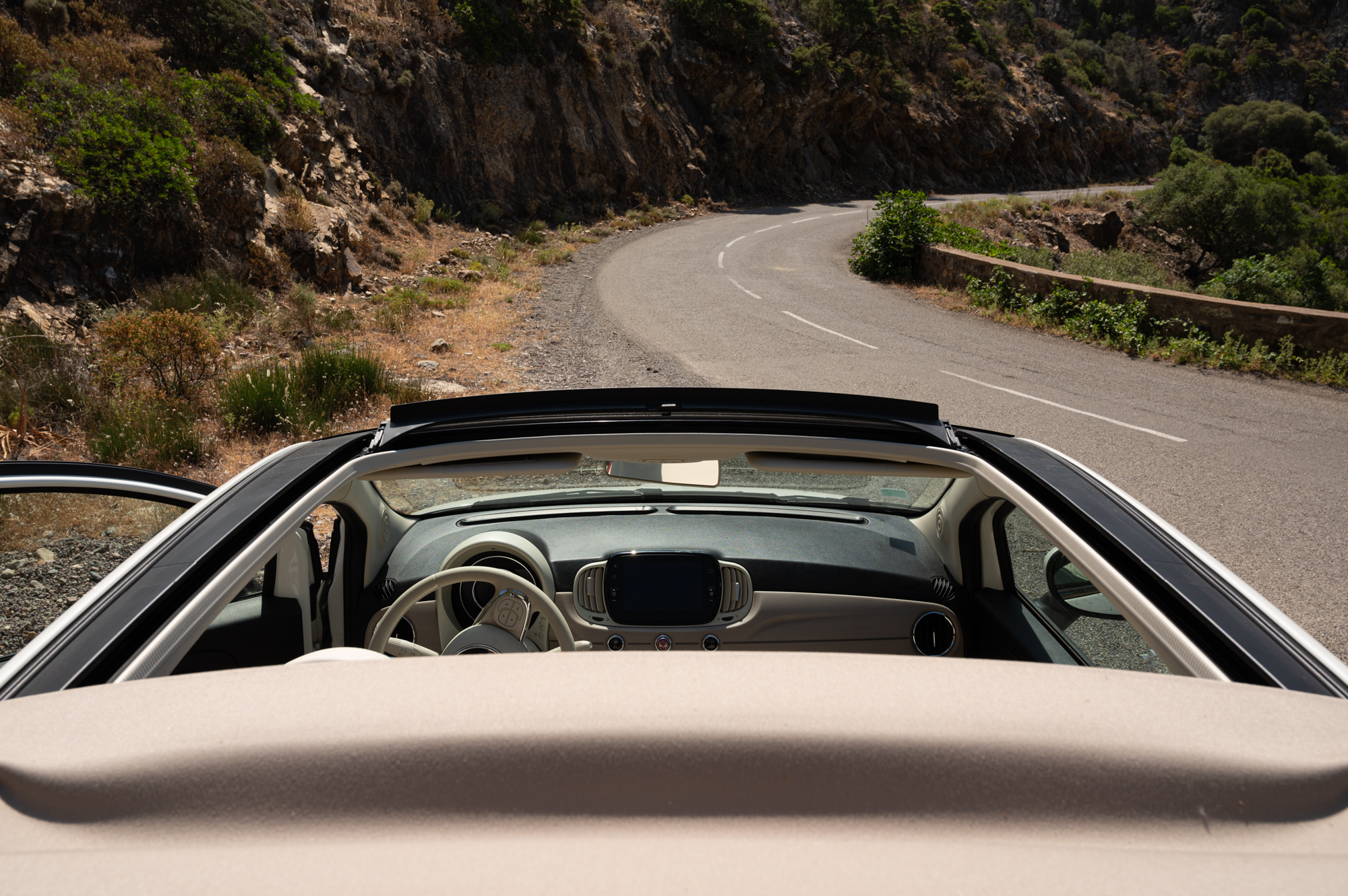 Heute Morgen herrscht bei uns Aufbruchstimmung. Wir lassen den Nordwesten Korsikas langsam aber sicher hinter uns und peilen unsere nächste Basis an: Porto an der Westküste. Das Rucksackpacken ist eingespielt, der Kofferraum unseres kleinen Fiats wird bis an den Rand gefüllt. Er ist erstaunlich geräumig: Zwei große Wanderrucksäcke, ein Sechser Wasser und ziemlich viel Kleinkram passen da rein. Die Bude hinterlassen wir besenrein, auch wo der Müll zu entsorgen ist, war Teil unseres Willkommensbriefings vor drei Nächten. Die übliche Mischung aus Wehmut und Entdeckergeist legt sich über uns. Ein Teil der Wegstrecke ist uns vertraut: Es ist die Straße über den Parkplatz von La Revellata, die die Küste südwärts Richtung Porto und Ajaccio führt. Kurz hinter dem Parkplatz ändert sich sehr schnell auch die Beschaffenheit der Straße. Sie wird löchriger, deutlich enger und nur eine alte, schmale, hüfthohe Mauer trennt die Straße vom steilen Gefälle. In den Kurven fährt man teilweise Schrittgeschwindigkeit. Ob Manöver nötig werden, ist Glückssache. Glücklicherweise sieht man an vielen Stellen entgegenkommenden Verkehr schon von Weitem, so dass man vorausschauenderweise einfach in eine der zahlreichen Haltebuchten einschwenkt, sollte es sich mal um breitere Fahrzeuge handeln. Die Reisebusdichte nimmt zu, die Motorradfahrer fahren eher Ideallinie als auf ihrer Spur zu bleiben. All das führt dazu, dass wir eher gemächlich vorwärts kommen. Aber im Cabrio mit guter Musik dazu lässt sich das sehr gut aushalten.
