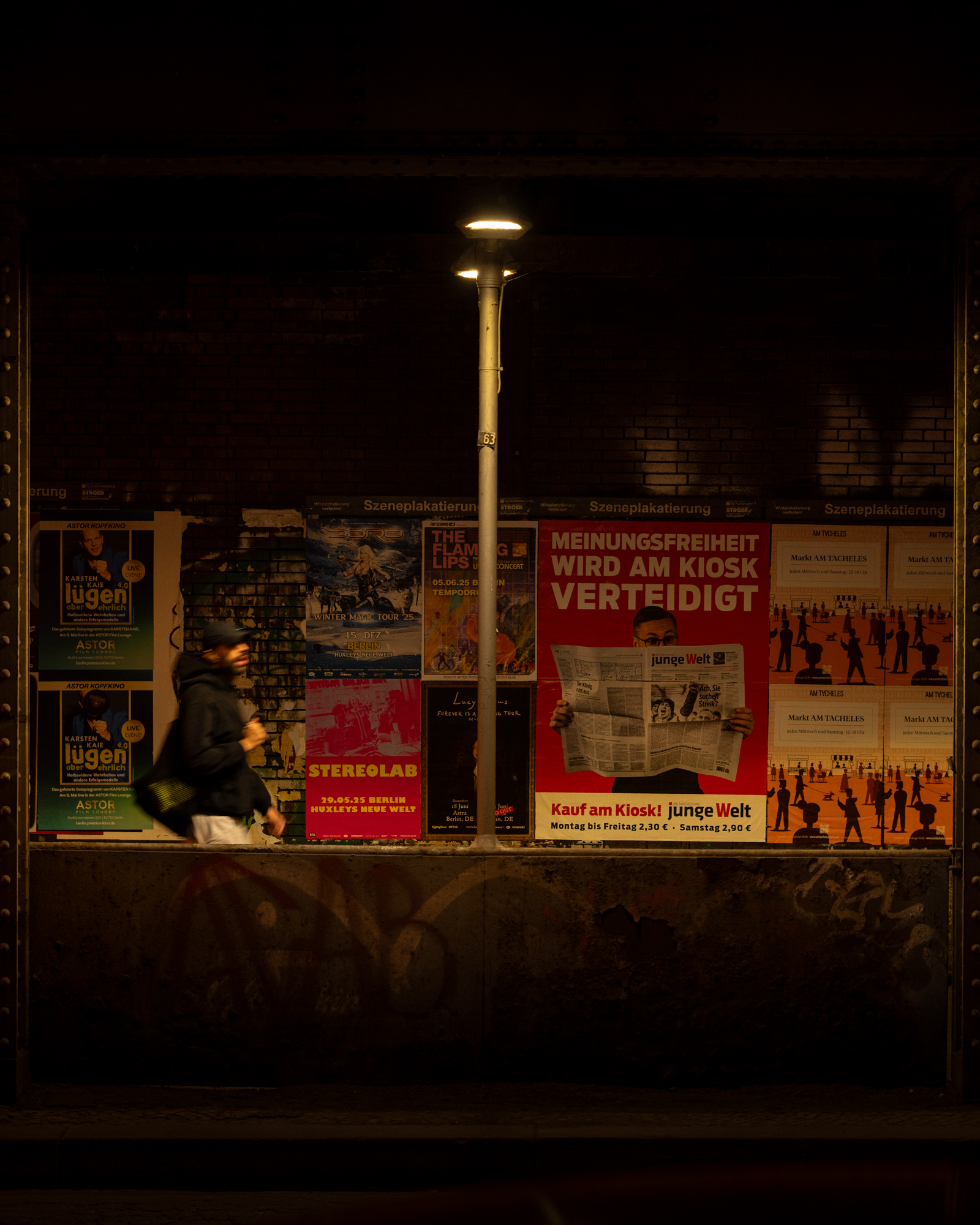 Einige Schritte weiter - in der Unterführung unter der Ringbahn hängen Plakate. Mal laut, mal leise, aber immer mit einer Botschaft. Botschaften, die kaum wahrgenommen werden von uns Großstädtern. Wir sind in unserer Welt: Kommen vom Training, von der Arbeit, sind auf den Weg zu Freunden oder auf dem Weg, die Kneipen zu füllen. Wir kommen aus dem Winter, freuen uns auf den Sommer.