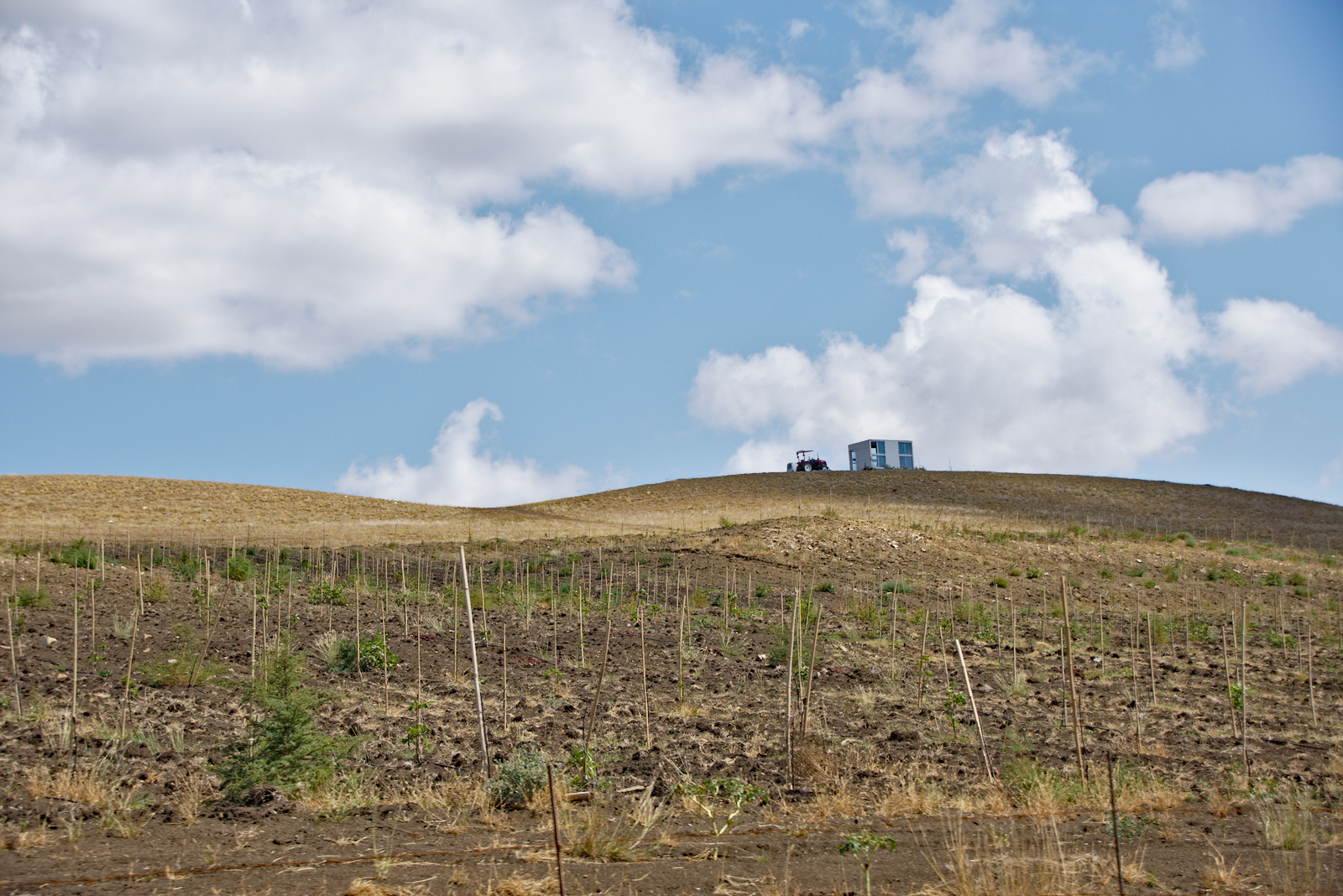 Kurz darauf befinden wir uns in einer Mondlandschaft, sie ist steppen-, fast wüstenartig. Sehr karg, hügelig und die Straßen sind holprig und mit mannsgroßen Löchern durchsät. Im Frühling soll hier sattes grün dominieren. Jetzt ist alles staubig.