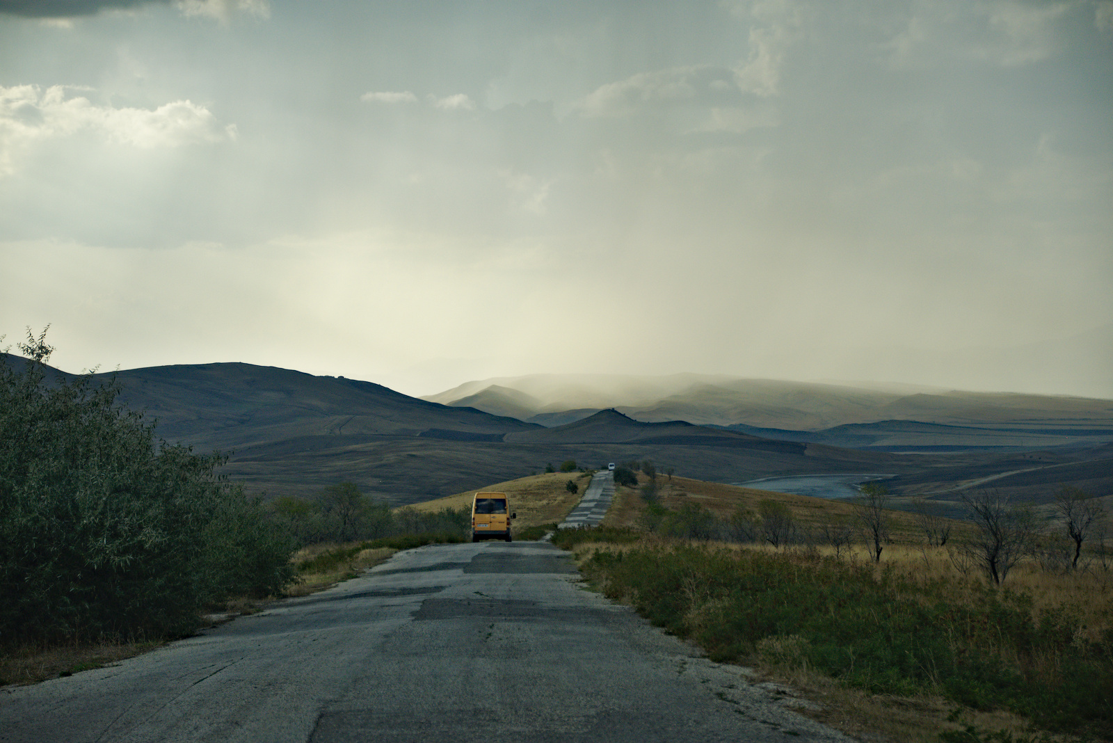 Zwanzig Minuten später heißt's "weiterfahren!". Es wird eine etwas längere Fahrt werden über Landstraßen und Dörfer. Wir sehen die Zedazeni-Brauerei, offenbar verlassene Industriegebiete aus Zeiten, in denen es Georgien besser ging? Auch die Dörfer scheinen ihre beste Zeit hinter sich gelassen zu haben. Und es sind viele Dörfer, die wir passieren. Die Zeit scheint hier langsamer zu vergehen, der Fortschritt lässt auf sich warten. Die Straßengräben sind gesät mit Autofriedhöfen. Kühe weiden wild in der Pampa - es scheint unwirklich. Und auch wenn sich die Augen nicht sattsehen können, fallen uns wieder einmal im Wechsel die Augen zu.
