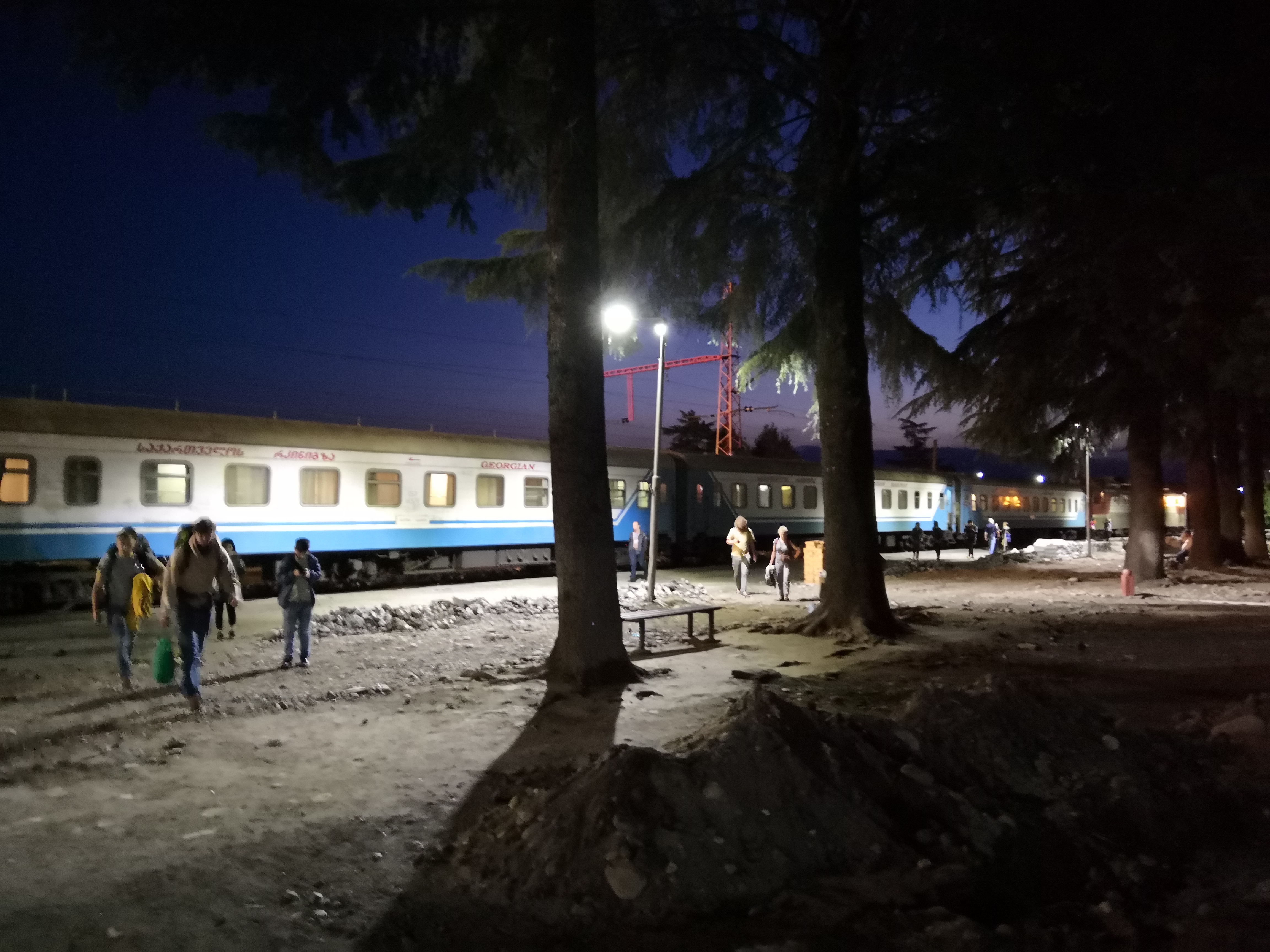 Kurz vor unserer Ankunft klopft es an unserer Tür. Der Schaffner läuft durch den Zug und klopft überall einmal. Unser georgischer Weckdienst. Die israelischen Jungs schlafen tief. Ich frage, ob ich das Licht anmachen kann. Nichts. Etwas lauter kündige ich an, das Licht anzumachen. "Why?". "We've arrived, guys". "Oh, we arrived? Thanks."