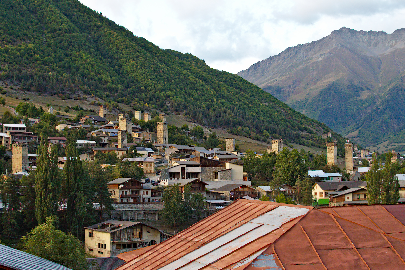 Das Stadtbild Mestias wird von Swanetischen Wehrtürme dominiert. Fast jedes ältere Haus besitzt einen derartigen Anbau. Viele der neu errichteten Häuser wirken noch unfertig und generell fällt auf, dass hier eine Menge in Bewegung ist. Zumindest diese Region scheint von den Geldströmen durch die Touristen zu profitieren.