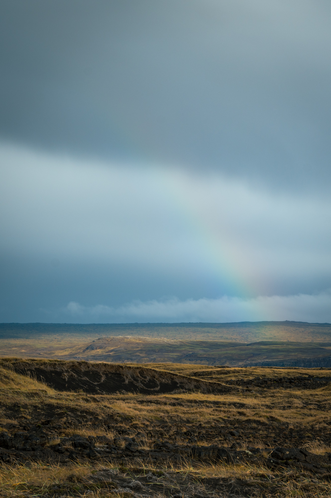 Ich trete weich. Und ich versuche das Moos nicht zu zertrampeln. Wie war das? Es wächst nur 2 Millimeter pro Jahr? Als ich über den harten Asphalt der Straße zurück in Richtung Auto gehe, sehe ich, wie sich das Licht auf der anderen Straßenseite in der feuchten Luft in allen Farben bricht. Sanft, aber doch deutlich zeichnet sich ein Regenbogen vom graublauen Himmel ab. Eine lange Zeit rauscht kein Auto vorbei. Sekunden kommen wie Stunden vor. Auf eine schöne Weise. Eine lange Zeit weht kein Wind. Absolute Stille. Zeit, um einfach nur zu gucken und zu genießen.