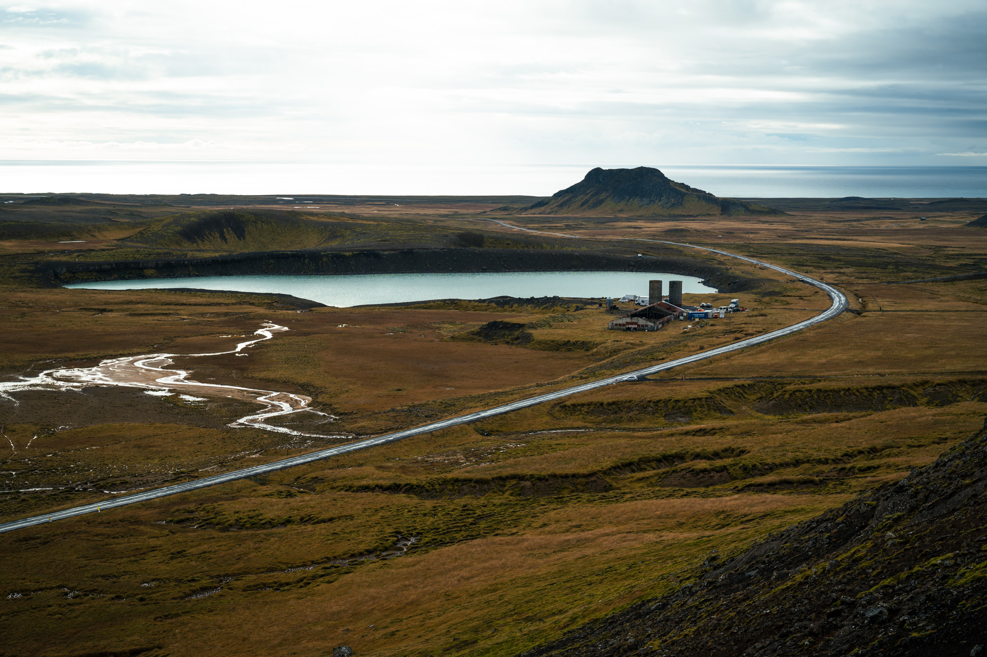 Je länger ich mich auf der Insel aufhalte, desto mehr bekomme ich den Eindruck, dass alles Schöne hier zusammentrifft. Island scheint der Prototyp der Schönheit zu sein. Und doch nimmt man's im Augenblick für selbstverständlich wahr. Den Motor startend merke ich, dass schon wieder 10 Kilometer bei der Restreichweite fehlen. Es sind noch etwa 30 Kilometer bis zu meinem nächsten Ziel. Weit und breit ist keine Tankstelle. Weitere 50 Kilometer bis zum Flughafen. Es macht mich etwas nervös. Für Umwege wird die Zeit etwas eng. Um zwei möchte ich Teresa vom Flughafen abholen. Grindavík liegt dann zum Glück auf dem Weg. Die Hoffnung, dass die Tankanzeige nicht lügt, ist groß. Nur wenig der Landschaft erinnert an den Eindruck, wie ich ihn auf meiner allerersten Fahrt hatte. Im gedämpften Licht wirkt alles gewöhnlicher, nur ganz wenig wie eine Marslandschaft. Als würde man alles durch einen blaugrünen Farbfilter sehen. Ich biege rechts ab, nur noch wenige Kilometer bis zu den Thermalquellen Seltúns. Rechterhand ist ein offensichtlich leerstehendes Industriegelände. Linkerhand dann der Parkplatz. Alle Autos sind weiß, viele davon Dacias desselben Modells, das ich auch fahre, wahrscheinlich alles Touristen.