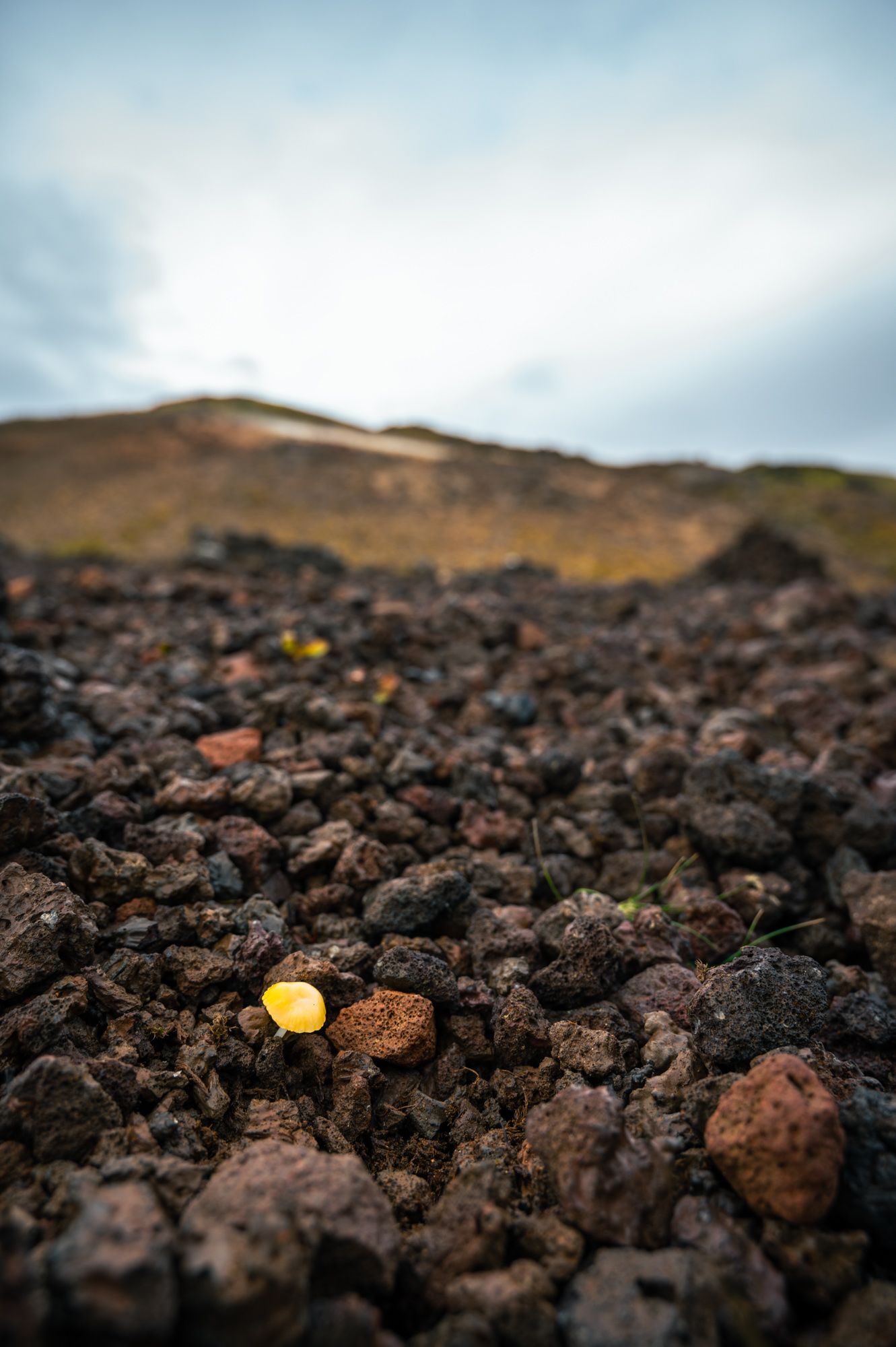 Jedes Detail der Landschaft ist beeindruckend. Ich verlasse die hölzernen Stelen und kraxel den schlammigen, steilen Weg auf den Berg hinauf. Schnaufend, aber zufrieden komme ich oben an. Ich blicke über die Straße, die mich hergeführt hat. Die Industriebrache, die mir auf dem Hinweg aufgefallen ist, fügt sich still in die Landschaft ein. Dahinter ein Vulkan. In der Ferne thront wieder das stille Meer zwischen gestreiftem Himmel und kontrastreicher Erde. Unter mir, inmitten des ganzen porösen Vulkangesteins, ragt ein kleiner, gelber Pilz heraus. Zusammen mit ein paar Grashalmen. Jedes Detail der Landschaft ist beeindruckend. Der Eindruck bestätigt sich wiederholt. Als ich wieder vorsichtig den rutschigen Weg talwärts gehe, biege ich links ab. Ein kleiner Bach hangelt sich hier in Kaskaden den Berg hinunter. Er ist eher kalt, brodelt nicht, Schmelz- oder Regenwasser. Einige Schritte weiter halte ich inne. Ein letzter Blick auf den dampfenden Boden, die ockergelbe Landschaft mit den vielen bunten Farbsprenkeln, den Himmel, der immer dramatischer zu werden scheint. Ich treffe eine Teamkollegin von Teresa, die mit ihrer Hostfamilie beim Sightseeing ist. Ein seltsamer Moment, wenn man an einem derart entfernten Ort einer bekannten Person begegnet. Schön und doch so absolut unwirklich.