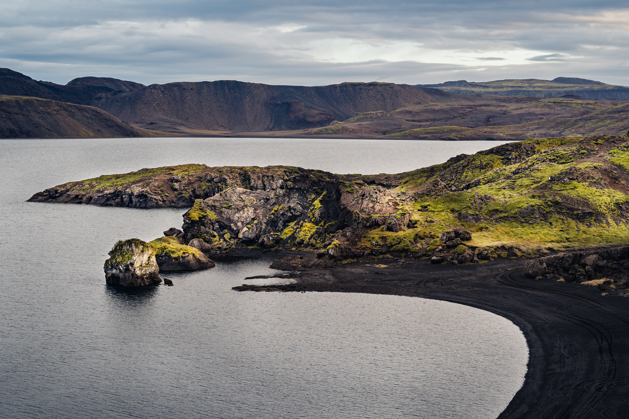 Krýsuvík heißt das Vulkansystem, zu dem auch die heißen Quellen Seltúns gehören. Nicht weit von hier ist übrigens auch der noch bis vor ganz kurzem aktive Vulkan Fagradalsfjall, der für viel Aufsehen gesorgt hat. Kurz vor unserer Ankunft hat er sich wieder schlafengelegt. Kaum vorzustellen, wie faszinierend es jetzt noch wäre, erdwarme, glühende Lava zu sehen. Wenige Kilometer weiter wird die Straße wieder zur Uferstraße des Sees Kleifarvatn. Als ich auch hier kurz halte, sind zwei Harleyfahrer damit beschäftigt, eines ihrer Gefährte zu reparieren. Auf den ersten Blick wirken sie etwas zwielichtig. Auf den zweiten harmlos und unwahrscheinlich nett. Wir grüßen uns freundlich, zwei Minuten später dröhnt es kurz laut auf und das Dröhnen verhallt wie der Donner nach einem heftigen Gewitter in der Ferne. Ich bin komplett für mich allein in der Stille des großen, unbeständigen Sees, der unter anderem von heißen Quellen gespeist wird. Unbeständig, weil er nach heftigeren Erdbeben gerne mal abläuft wie eine Badewanne, deren Stöpsel man gezogen hat.