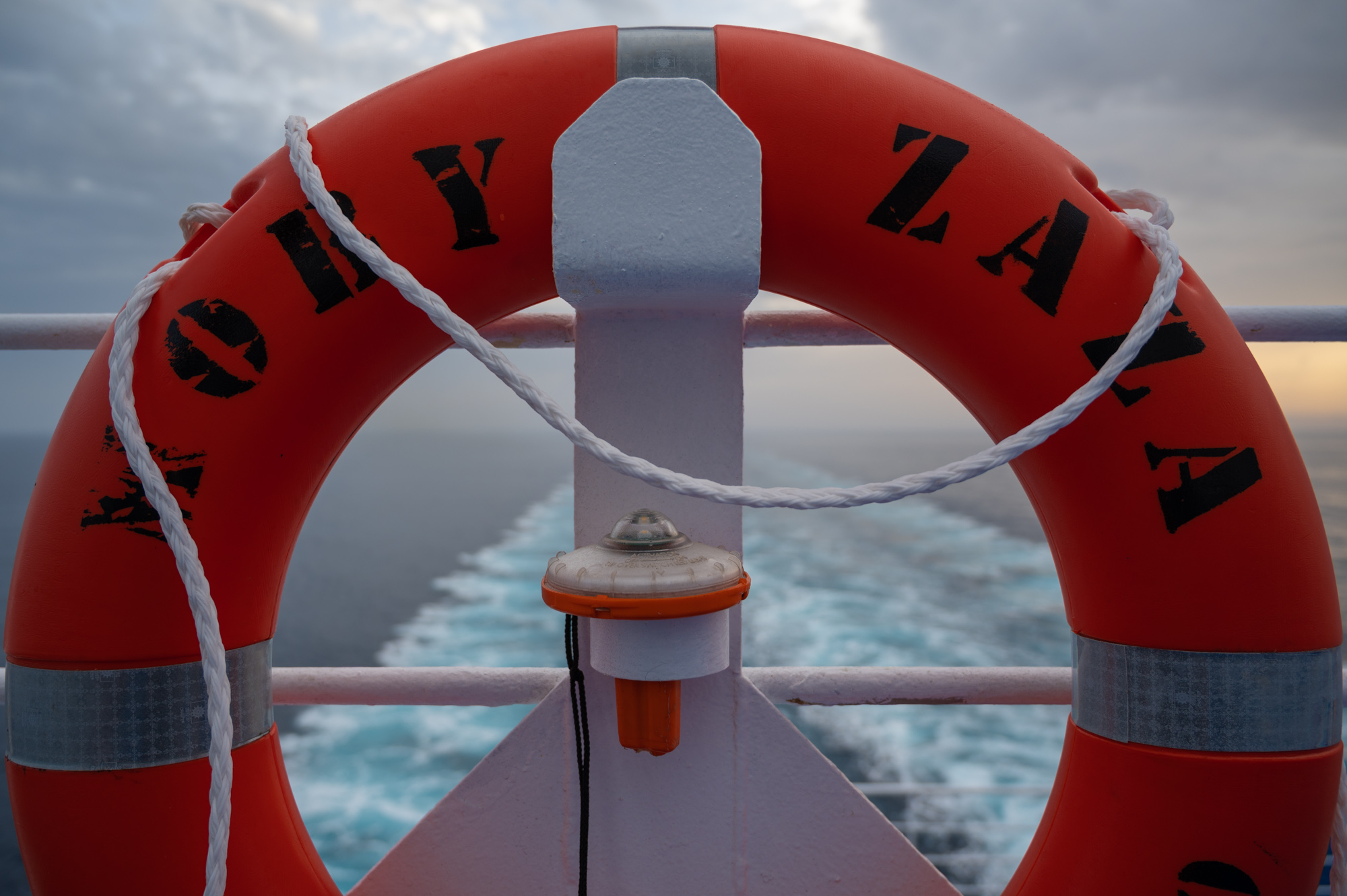 Beinahe zehn Stunden lang hat das Schiff bereits eine lange Schleppe sprudelnden Wassers hinter sich hergezogen. An der Schiffsseite leuchtet das Wasser in erfrischendem Hellblau. Während wir unsere Fahrt verlangsamen, wird die Geschäftigkeit der Besatzung immer größer. Immer mehr Menschen versammeln sich an Deck, viele Kinder wollen sich das Anlegespektakel anschauen.