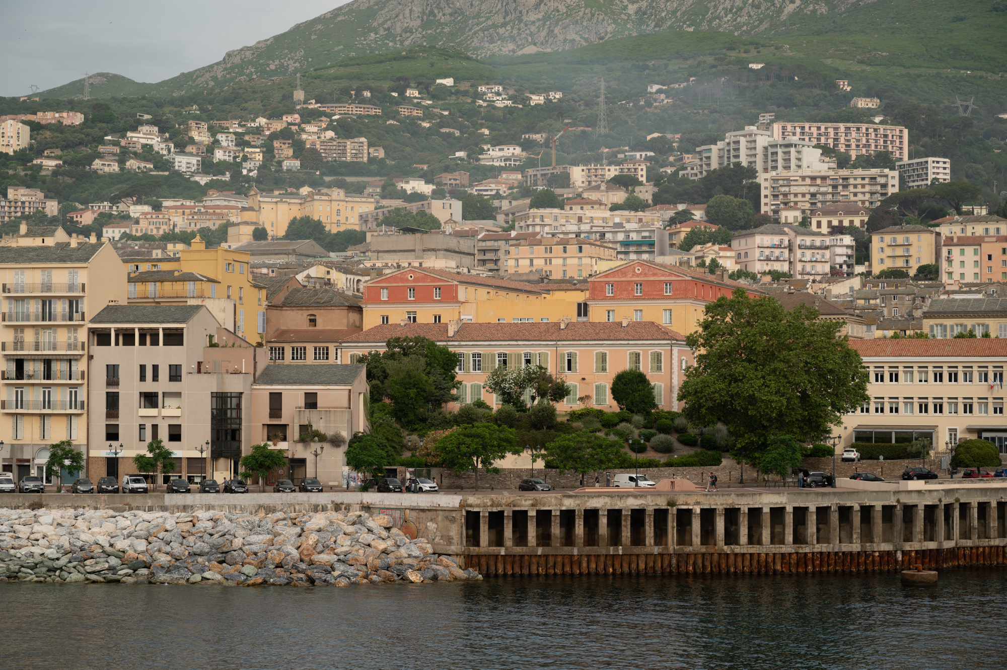 Das da in der Ferne muss Bastia sein, deutlich dichter besiedelt als alles, was wir bislang gesehen haben. Und große Schiffe verraten uns die Lage unseres Zielortes: den Hafen der mit knapp 50.000 Einwohnern zweitgrößten Stadt der Insel.