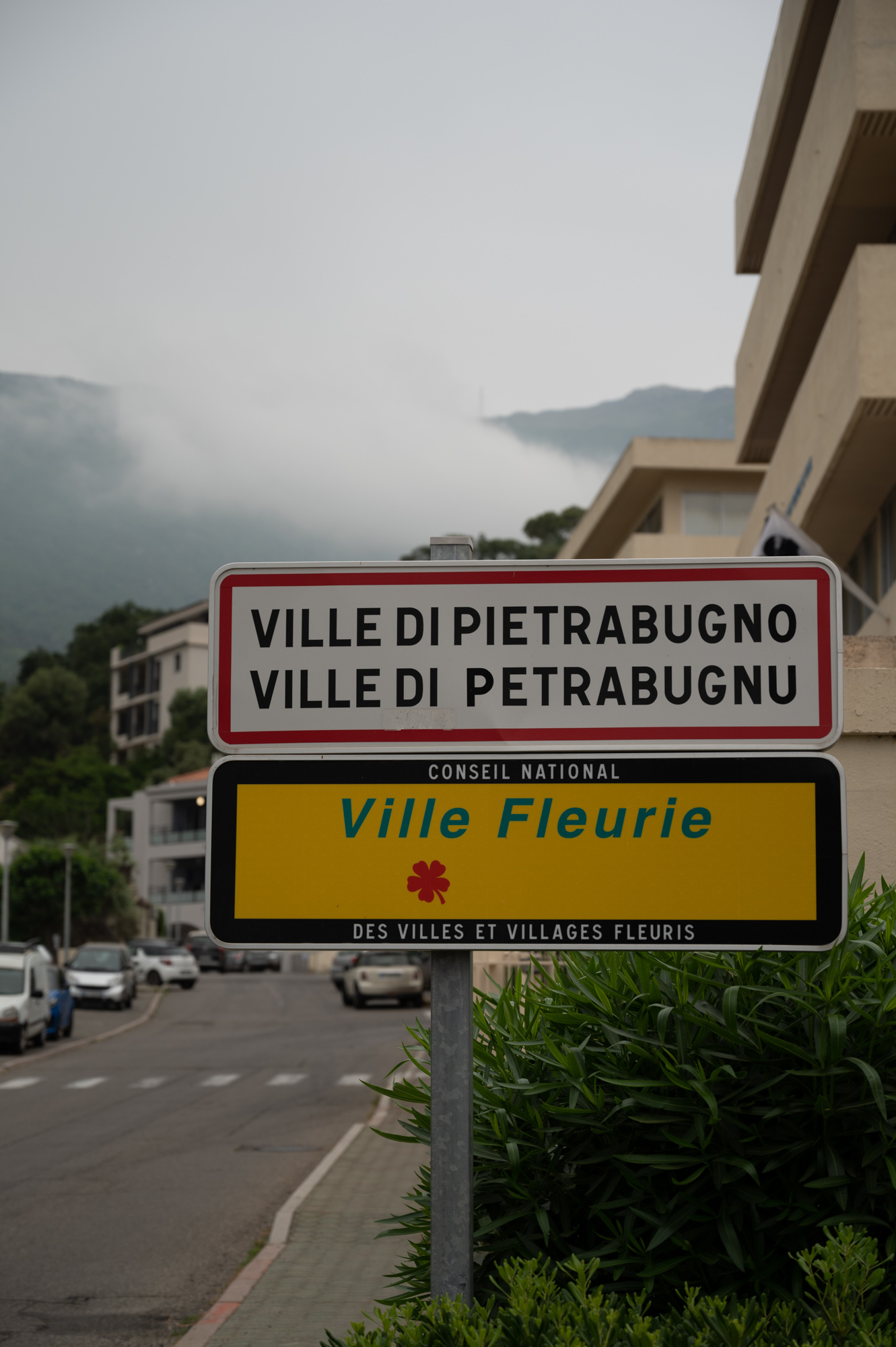 Pietrabugnos "Wahrzeichen" ist die in weiten Teilen Bastias sichtbare Kirche. Von Bastia aus sieht der Ort aus, als könnte es da keine Straße hingeben. Unterhalb der Kirche ein malerischer Friedhof. Jedes Grab ist ein kleines Häuschen mit Kreuz drauf. Eine alte Dame ist mit Grabpflege beschäftigt.