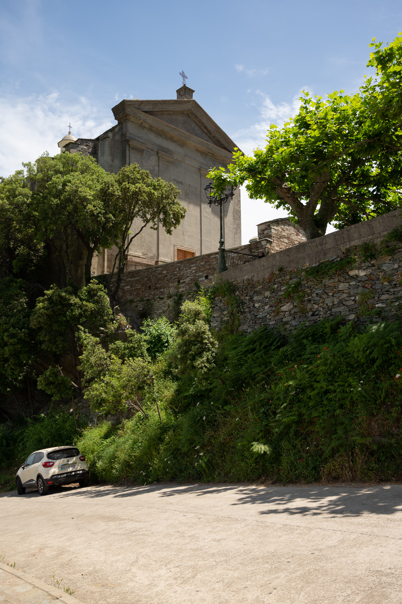 Langsam nähern wir uns dem Örtchen San-Martinu-di-Lota. Canale haben wir wegen unseres Navigationsproblems leider verpasst. Umso faszninierter sind wir aber von der Ruhe, die von dem Ort ausgeht. Auch hier wieder ein verlassenes Hotel, eine malerisch höher abgesetzte Kirche und ein Olivenbaum mit zwei Bänken darunter. Dazu ein herrlicher Blick über das Tal.
