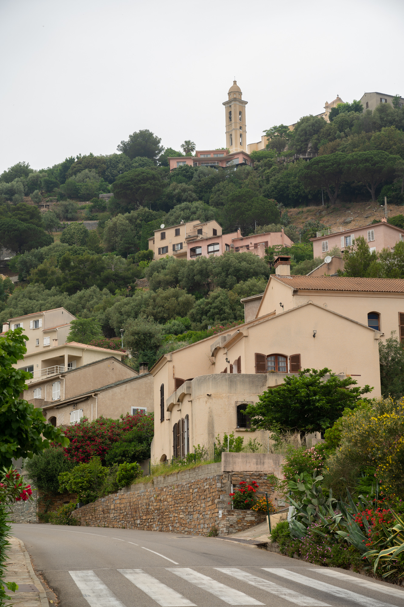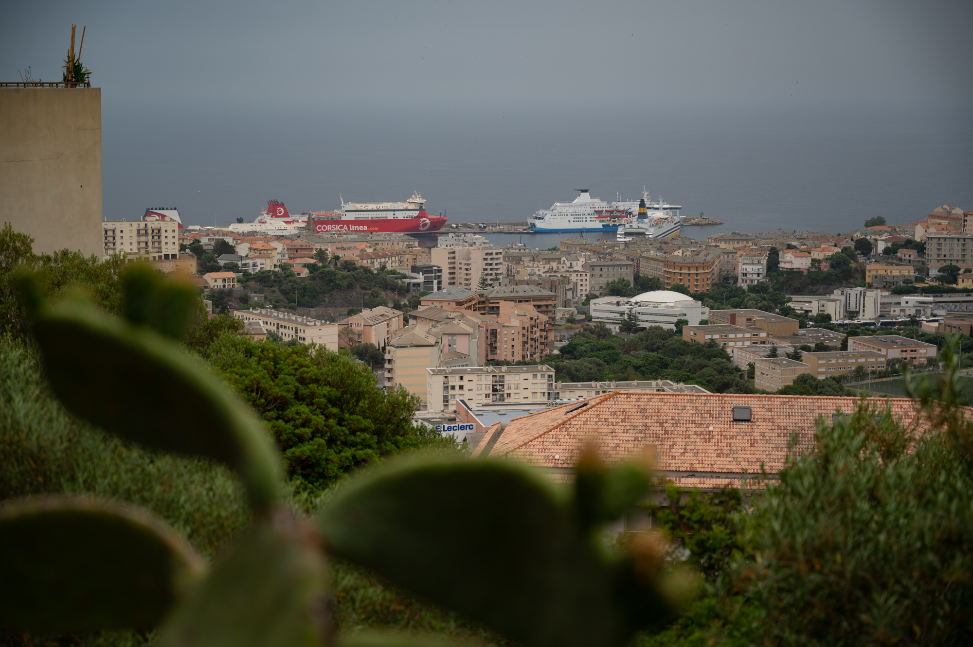 Je höher man kommt, desto interessanter der Ausblick. Auf die unter uns liegenden terrassenartig angeordneten Wohngebäude, auf den Stadtkern Bastias und den Hafen im Hintergrund.