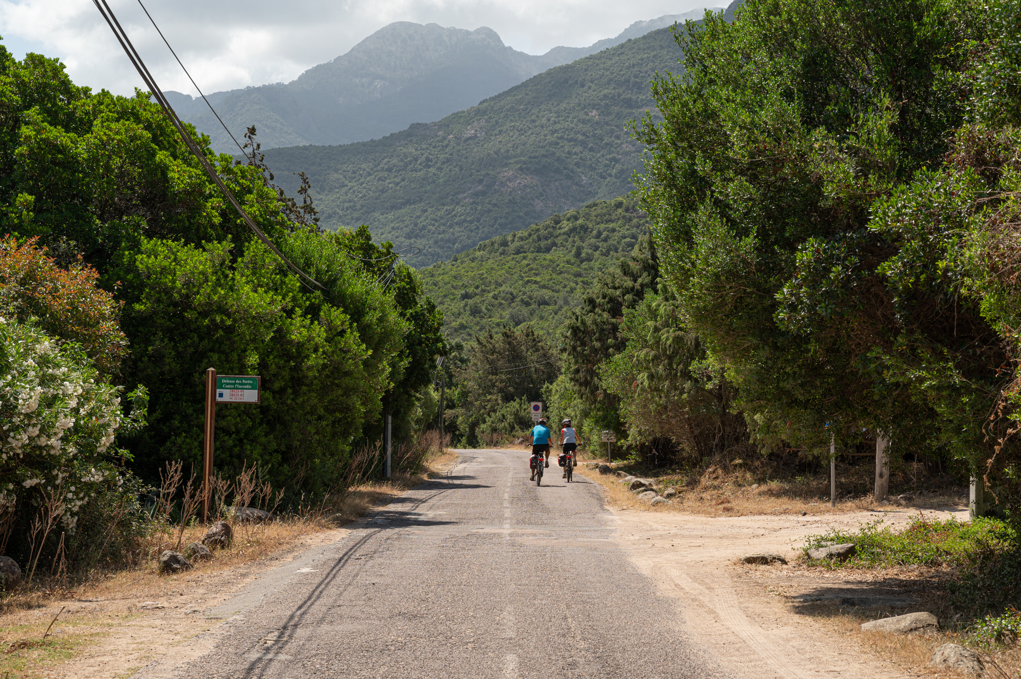 Ein entspanntes "Cruise"-Gefühl hat sich schon lange eingestellt, als die Straße immer weiter von der Küste weg ins Landesinnere führt. Die Bäume sorgen für mehr Schatten, die Eindrücke werden abwechslungsreicher. Knapp mehr als die Hälfte der etwa achtzig Kilometer liegen hinter uns, als ich zunächst falsch abbiege und beim Wendemanöver die Bodenfreiheit des kleinen Cruisers ein wenig unterschätze. Wir wollten links abbiegen, die Straße, die dem Flusslauf des "Fango" folgt. Er fächert sich auf dem Weg zum Meer in ein Delta. Aber von Fluss ist hier noch nichts zu sehen. Ein trockenes Flussbett aus Stein und Geröll liegt einige Kilometer lang links der Straße.