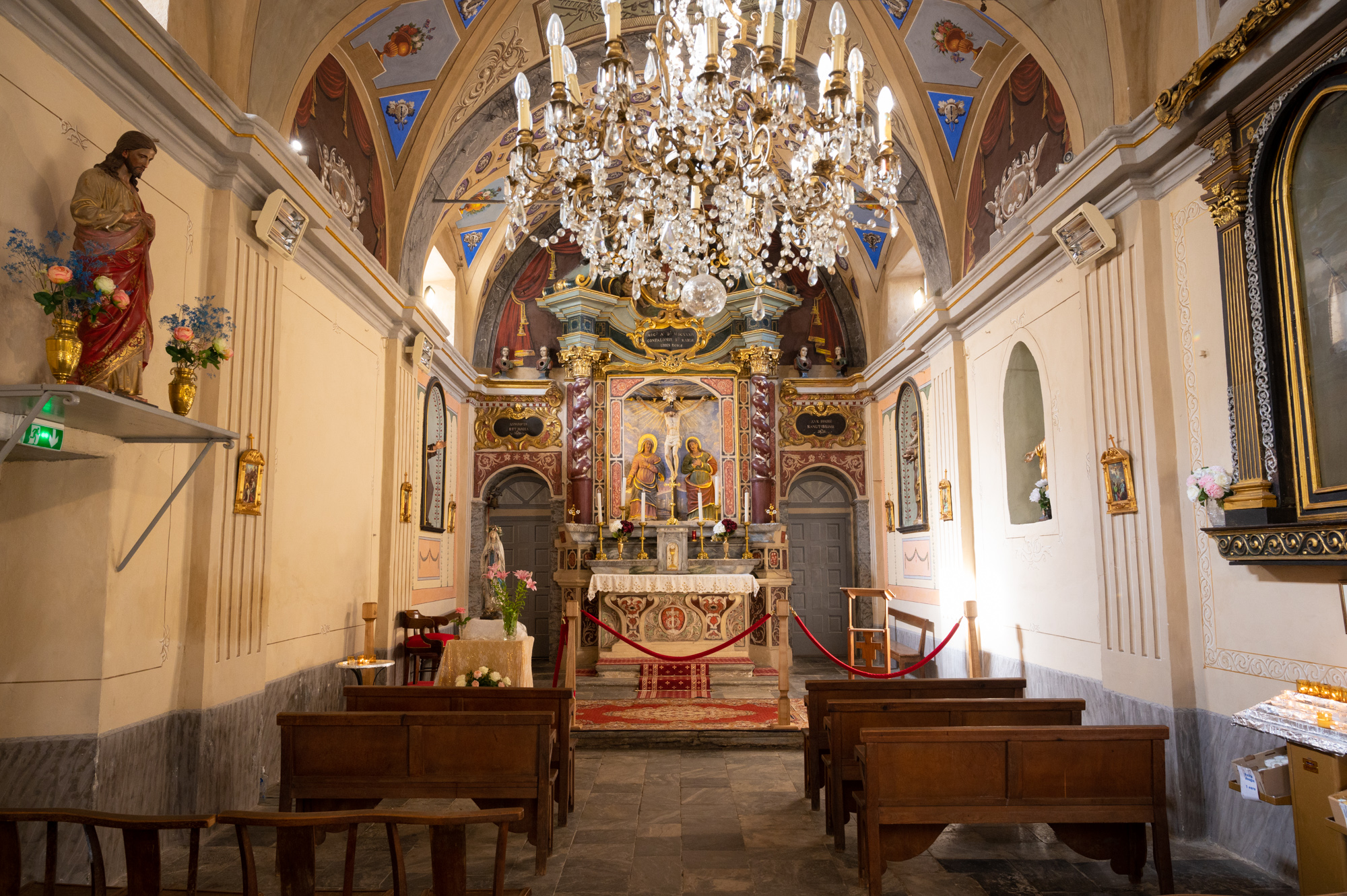 Die Zeit plätschert nur so vor sich hin. Wir spazieren den Cours Paoli ein ganzes Stück stadtauswärts. Cafés und Modegeschäfte, Immobilienmakler und Touristenläden wechseln sich hier dicht an dicht ab. Schließlich biegen wir willkürlich in die Rue du Colonel Feracci. Die Ladengeschäfte weichen zugunsten von Wohnhäusern und Büros. Bald schon, zu unserer Linken, taucht die Chapelle Sainte-Croix auf. Ihr Inneres ist heimelig und pompös zugleich. Es riecht dezent nach Weihrauch. Im hinteren Bereich der kleine Chor, hinter dessen kunstvoll bemalten Brüstung der Prospekt einer kleinen Orgel hervorlugt. Wir gehen die Rampe Sainte-Croix zurück in Richtung Cours Paoli. Nach diesem kleinen, ruhigen Umweg erscheint mir die Straße wieder geschäftig und hektisch.