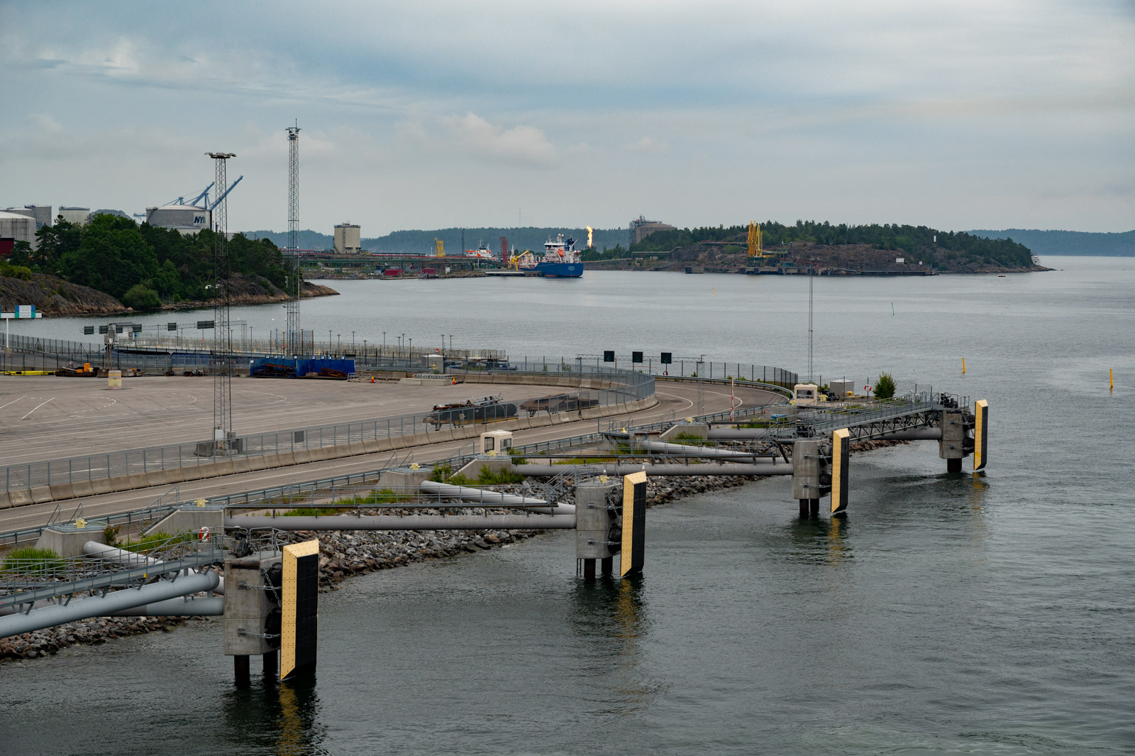 Die ersten beiden Etappen sind geschafft. Halbzeit. Als wir in den Hafen von Nynäshamn einlaufen, haben wir mit der Fähre knapp 550 Kilometer zurückgelegt und waren 18 Stunden an Bord. Die Eindrücke der Fahrt sind vielfältig.Vielfältig sind auch die ersten Eindrücke von Schweden. Links von uns ist der bewaldete Fels mit bunten Farbtupfern übersäht. Kleine Hütten, meist im dunklen Rotton gestrichen und mit Bootsanleger ausgestattet. Rechts von uns befindet sich dagegen ein graues, dicht bebautes und geschäftiges Industriegebiet. Mittendrin ein Fackelturm, der eine grelle Flamme speit.