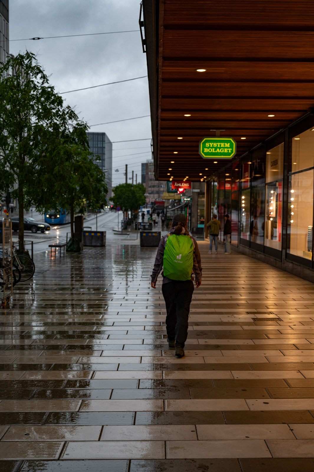 Innerlich haben wir uns schon auf skandinavische Preise eingestellt. So schlucken wir zwar bei den knapp 6 stündlichen Euro für die Gepäckaufbewahrung, nehmen sie aber wegen des dazugewonnenen Komforts in Kauf. Immerhin ist bei 300 Kronen Schluss. Wir haben 10 Stunden Zeit uns die Stadt ein wenig zu erlaufen. Eine ganze Weile klappt das sehr gut. Das, was wir von der Stadt sehen, macht Lust auf mehr. Je stärker aber der Regen fällt, desto deutlicher fällt der Plan buchstäblich ins Wasser. Die Erkundungspläne schieben wir also vollständig an das Ende der Reise. Auch hier wird es damit eher ein - zugegeben sehr entspannter - Boxen-Stopp.