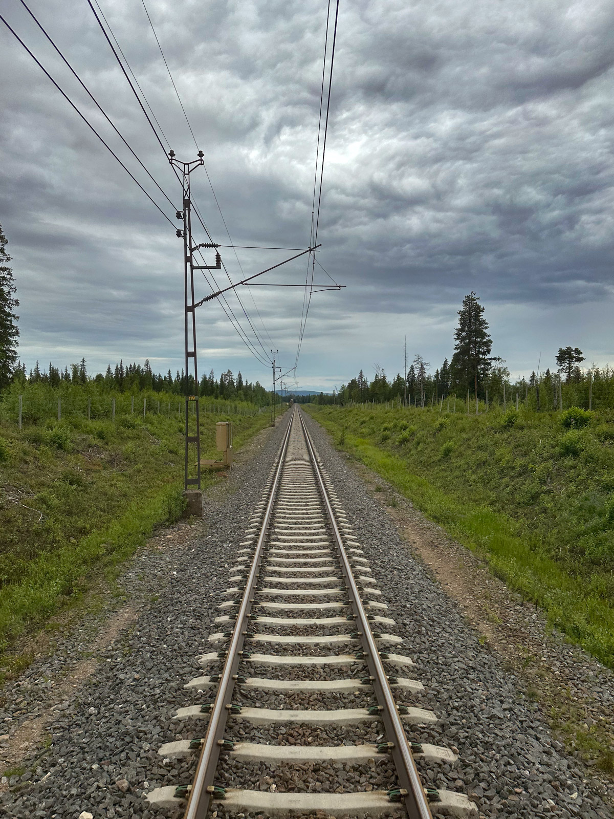 Dreieinhalb Stunden mit dem Regionalzug trennen uns von unserem vorletzten Etappenziel: Kiruna. In den bequemen Sitzen sehen wir zum ersten Mal, dass sich an der Vegetation etwas nennenswert ändert: Die Bäume sind niedriger, es wirkt eine ganze Ecke karger als in Zentralschweden. Etwas bleibt aber konstant: Wir haben fast durchgehend Empfang, schnelles Internet über unser Handy und wenn nicht dort, dann über das Bord-WLan. Es entsteht der Eindruck, als hätten die Schweden in einem Flächenland etwas hinbekommen, das uns in Deutschland selbst in Ballungsräumen nicht gelingen möchte.