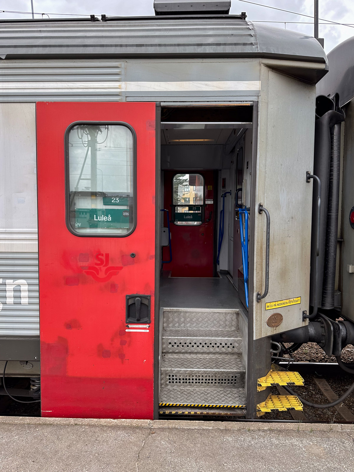 In Boden, knapp südlich des Polarkreises, haben wir eine Dreiviertelstunde Aufenthalt. Es ist warm, um die 15 Grad. Der Bahnhof ist verschlafen und sieht aus, als würde er in den Schwarzwald ganz gut hineinpassen.