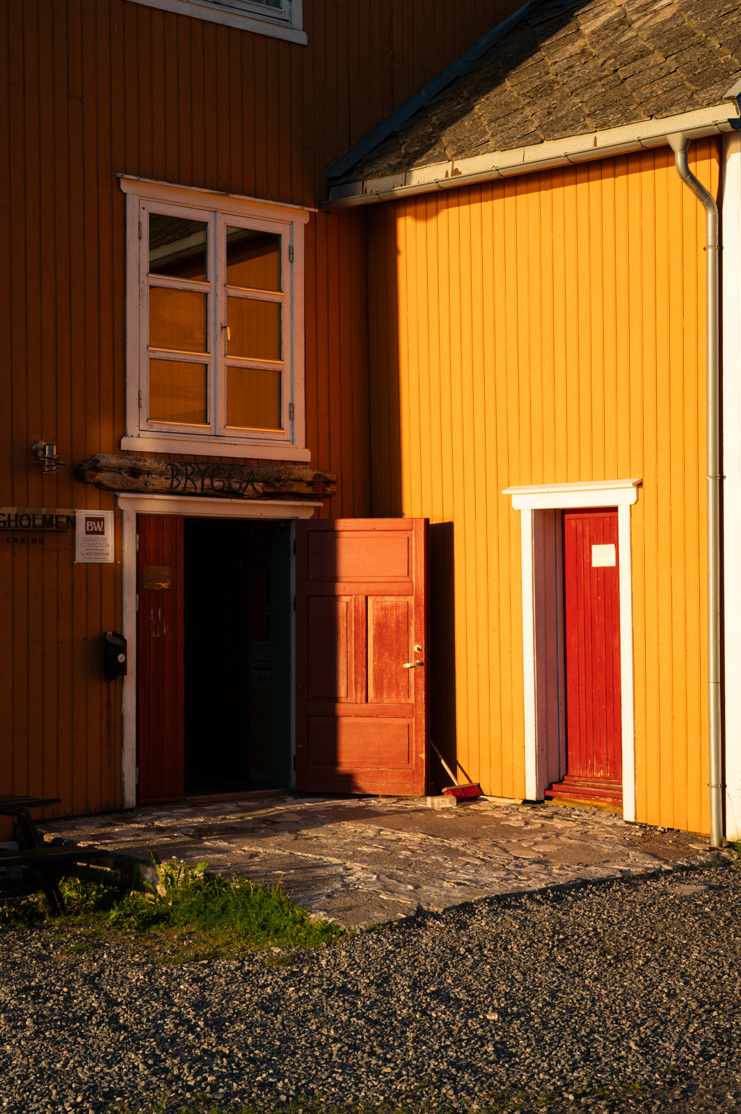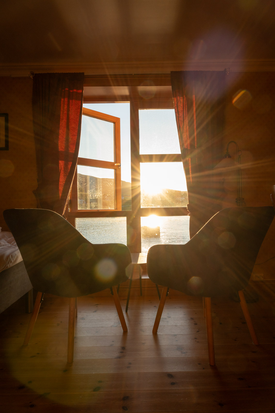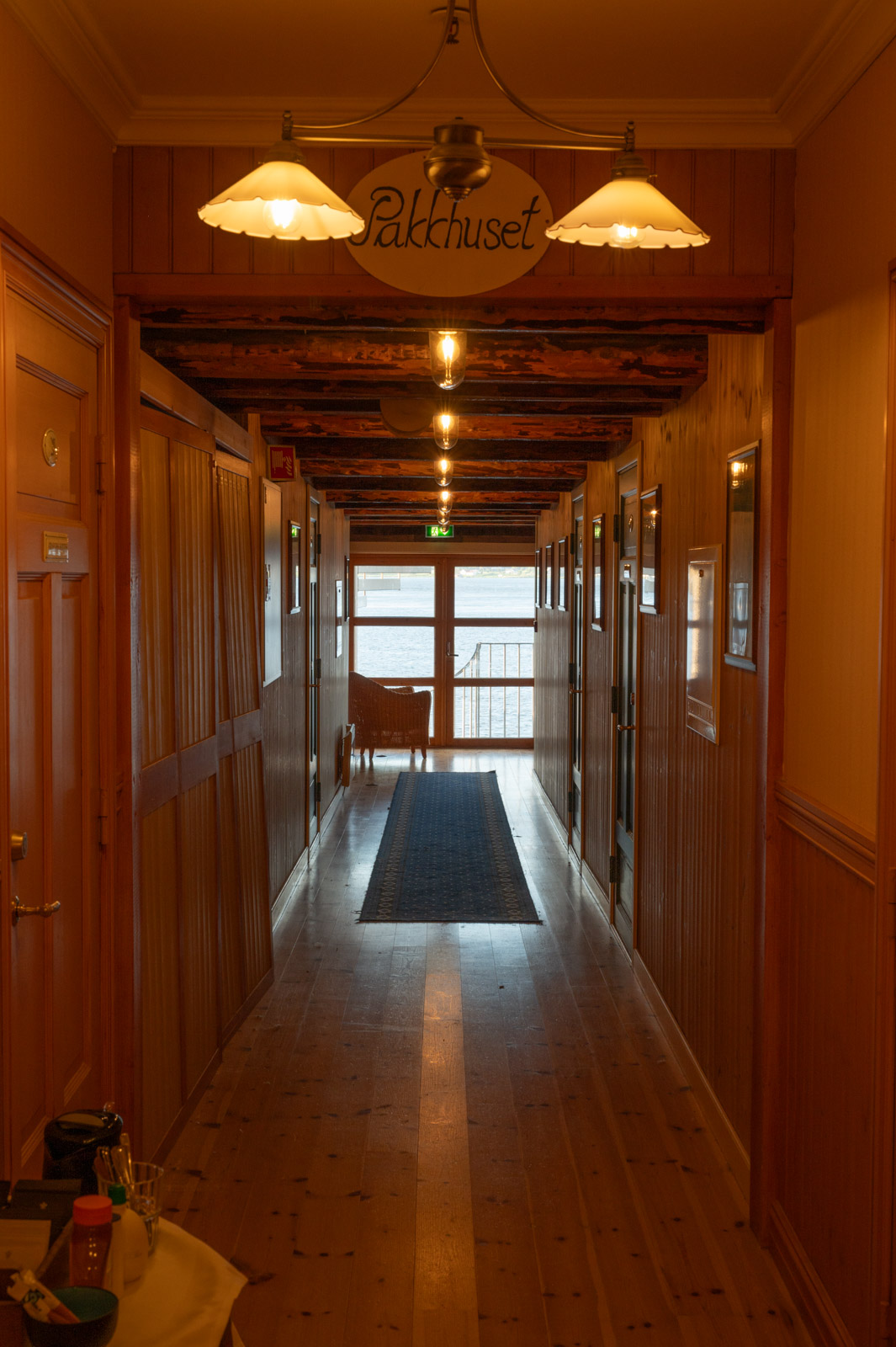 Das Sandtorgholmen Hotel liegt auf einer winzigen Halbinsel. Es weht ein frischer Wind, als wir aus dem Auto steigen. Die Rezeption befindet sich im Zentralgebäude und wirkt, als wäre es einst ein stolzes Bauernhaus. Das Wasser glitzert in der tief stehenden Sonne, die angenehme Geräuschkulisse eine Mischung aus dem Rauschen der Wellen und einem aufgedrehten Kreischen der Vögel. Die Einrichtung ist einfach und das Ambiente rustikal-gemütlich, wir fühlen uns auf Anhieb wohl.