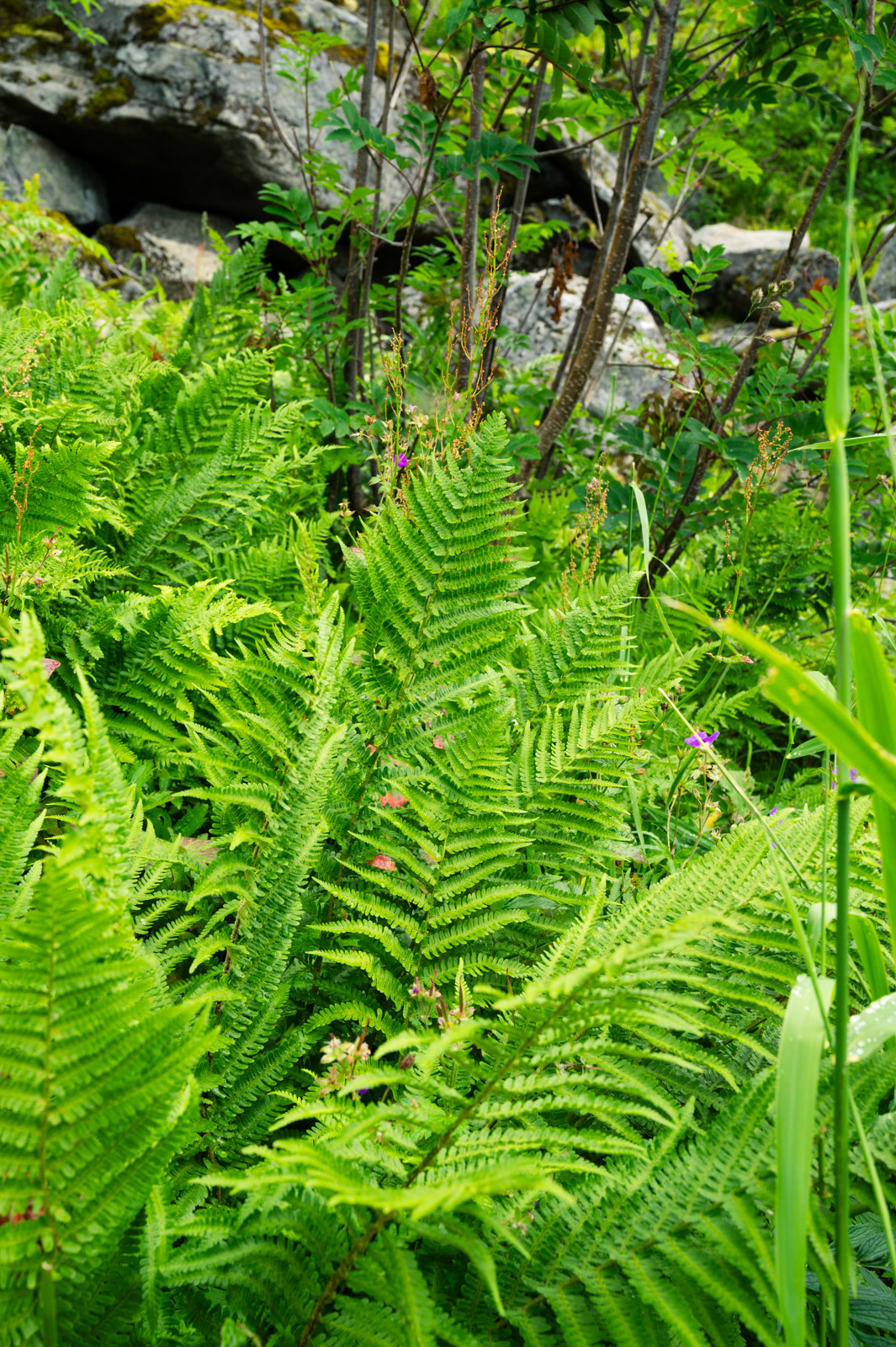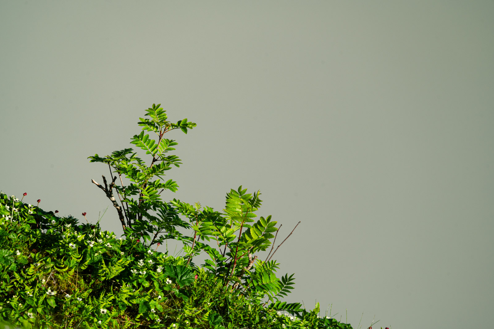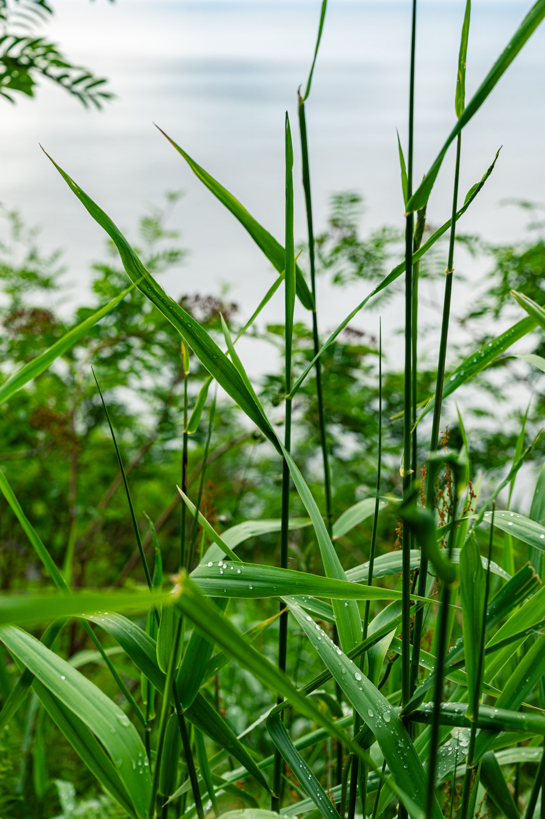 Die Wolken scheinen aus dem Nichts zu entstehen und verschlucken die Sonne in einem diffusen Leuchten. Es wirkt, als würden wir gleich in eine ganz andere Welt eintauchen. Es wird kühler, es wird feucht. Die Feuchtigkeit kondensiert an den Blättern der Pflanzen, der Farn wächst sattgrün. Allmählich ist auch unter uns von der Straße nichts mehr zu erkennen.